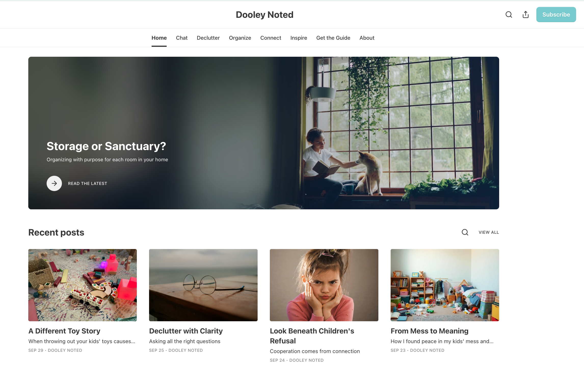 Join the Community Dooley Noted is a companion site with additional resources to support families on the journey to strengthen connections through home organizing. Join Now •